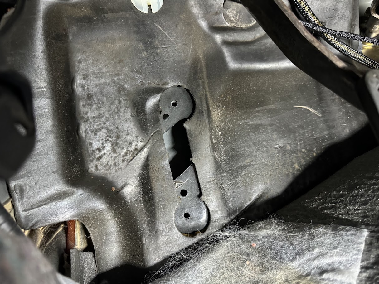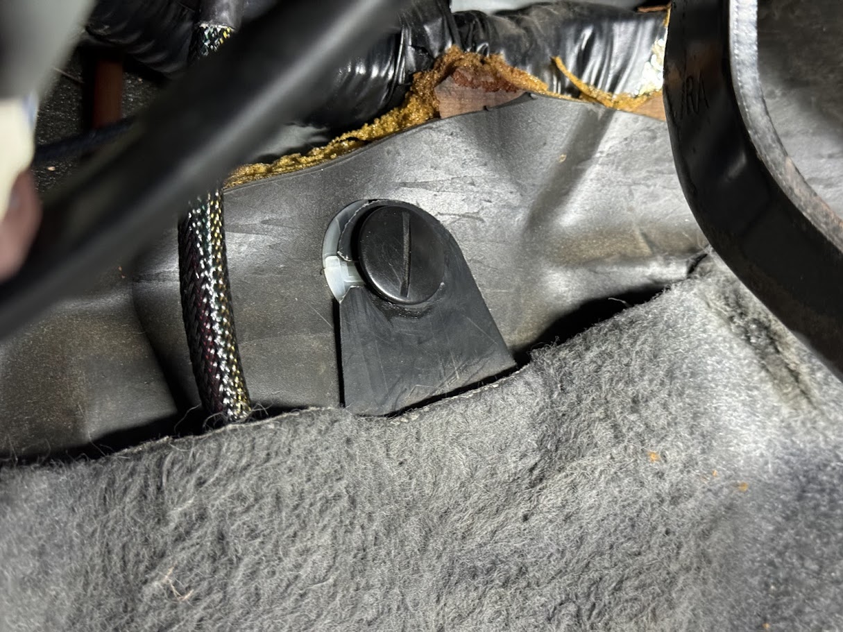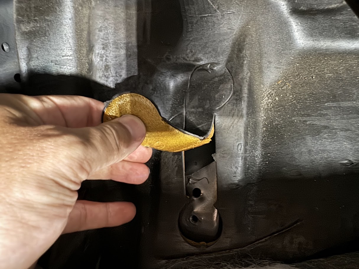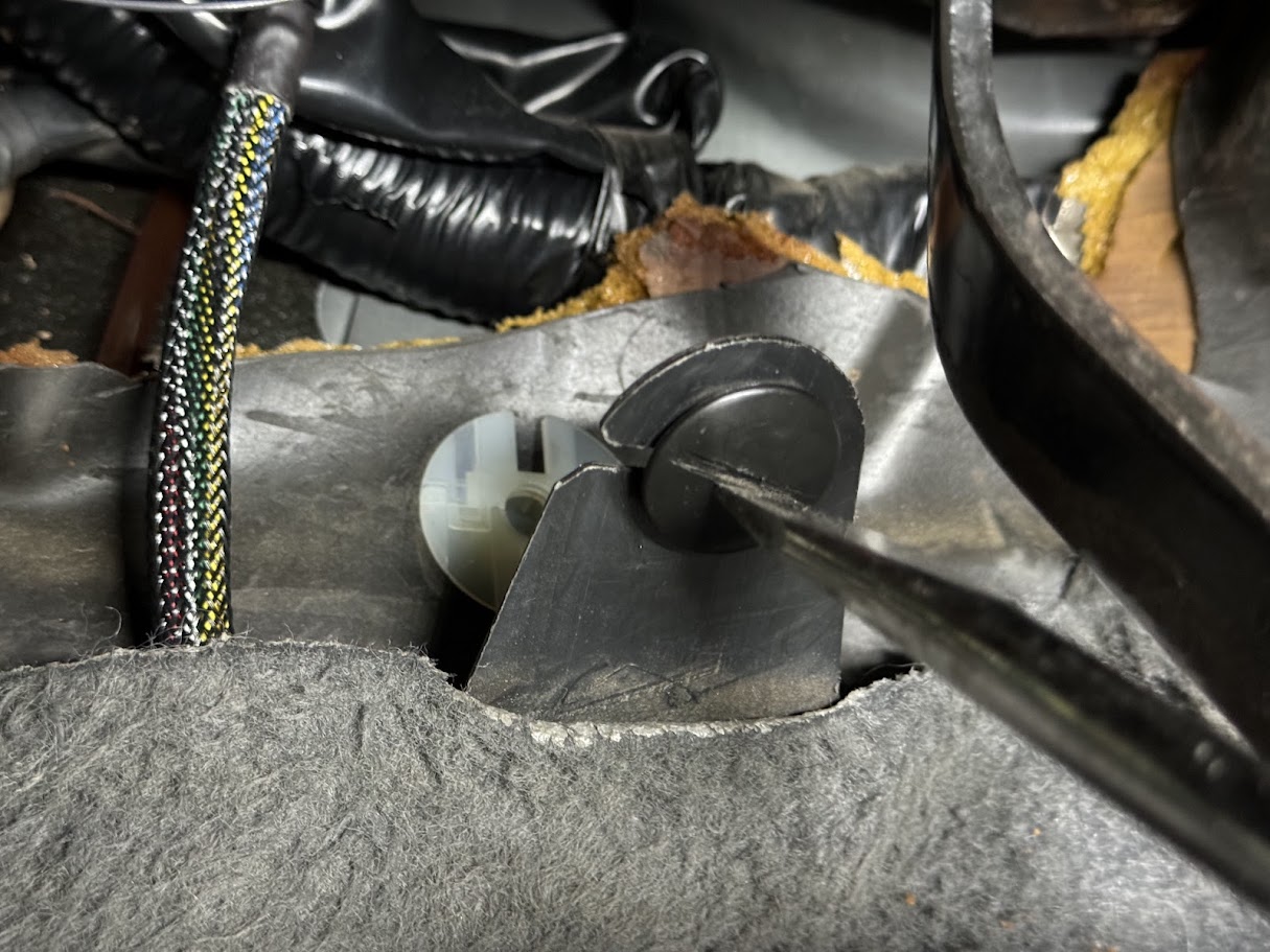I placed the carpet back against the firewall and then pulled it back a few times to line up the hole placement, and then I just used a pick to stab into it and round up the holes until they were big enough to fit the plastic alignment tabs / bolts.