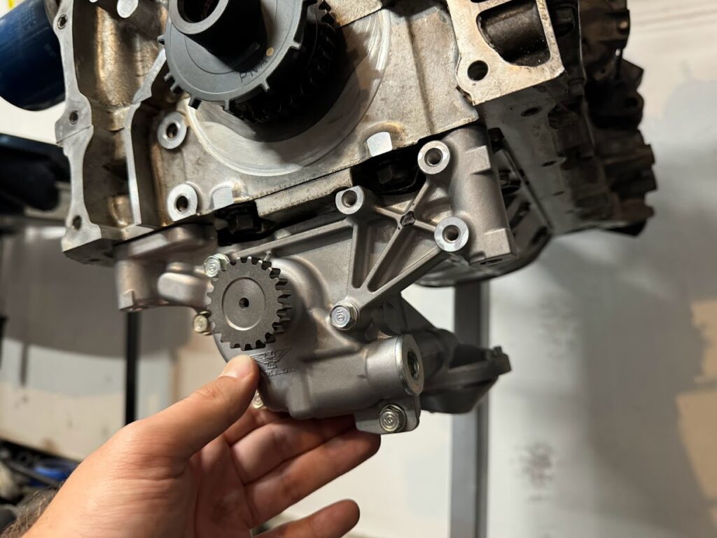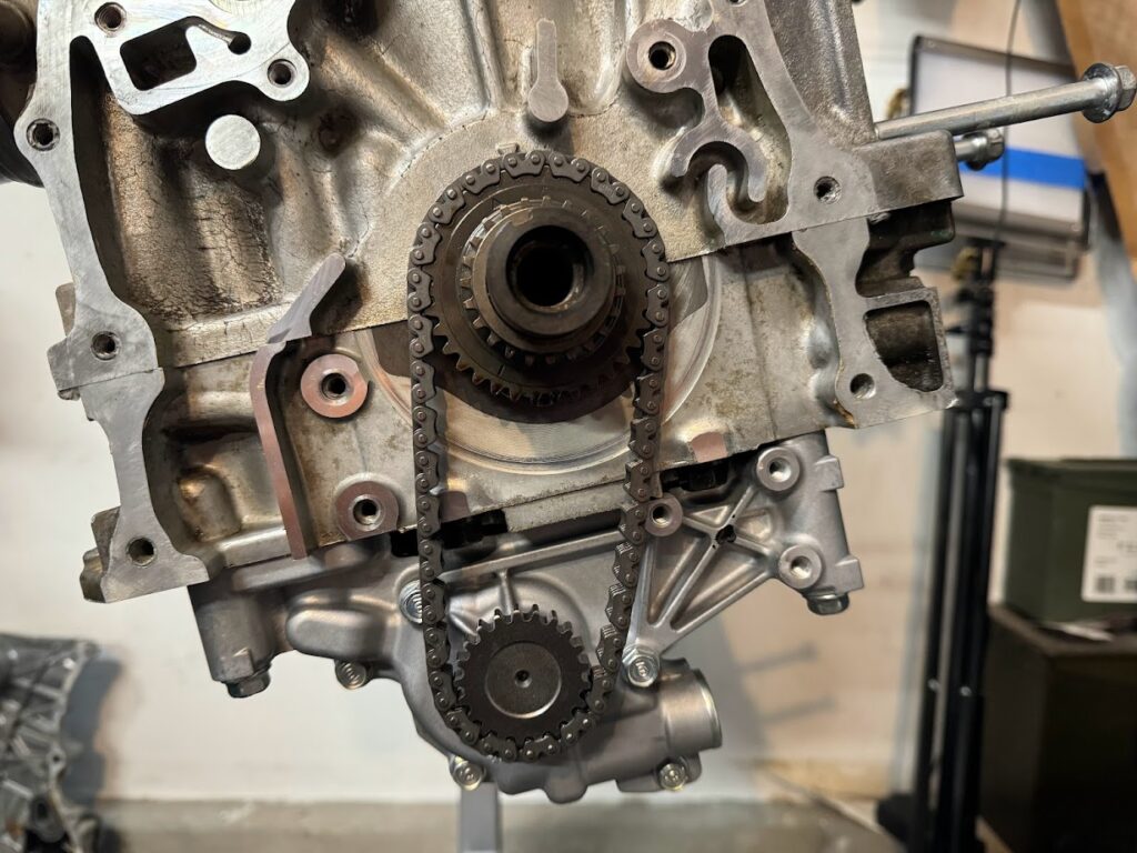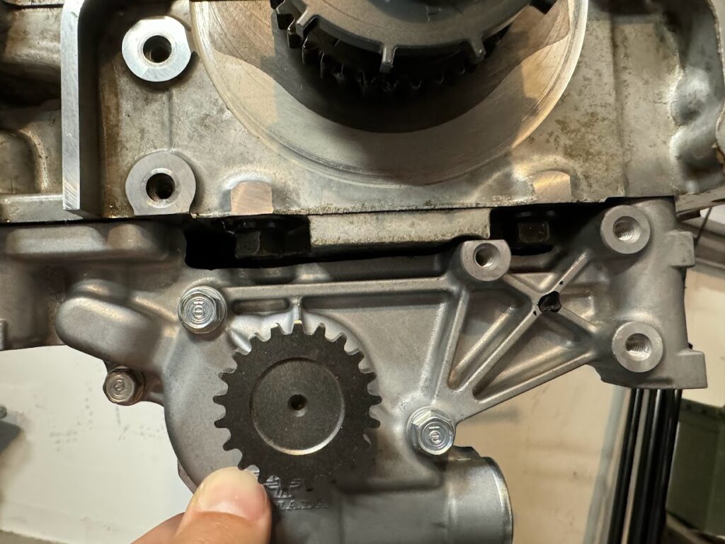 Oil pump chain installed (required tilting the pump first before full bolting it back down)