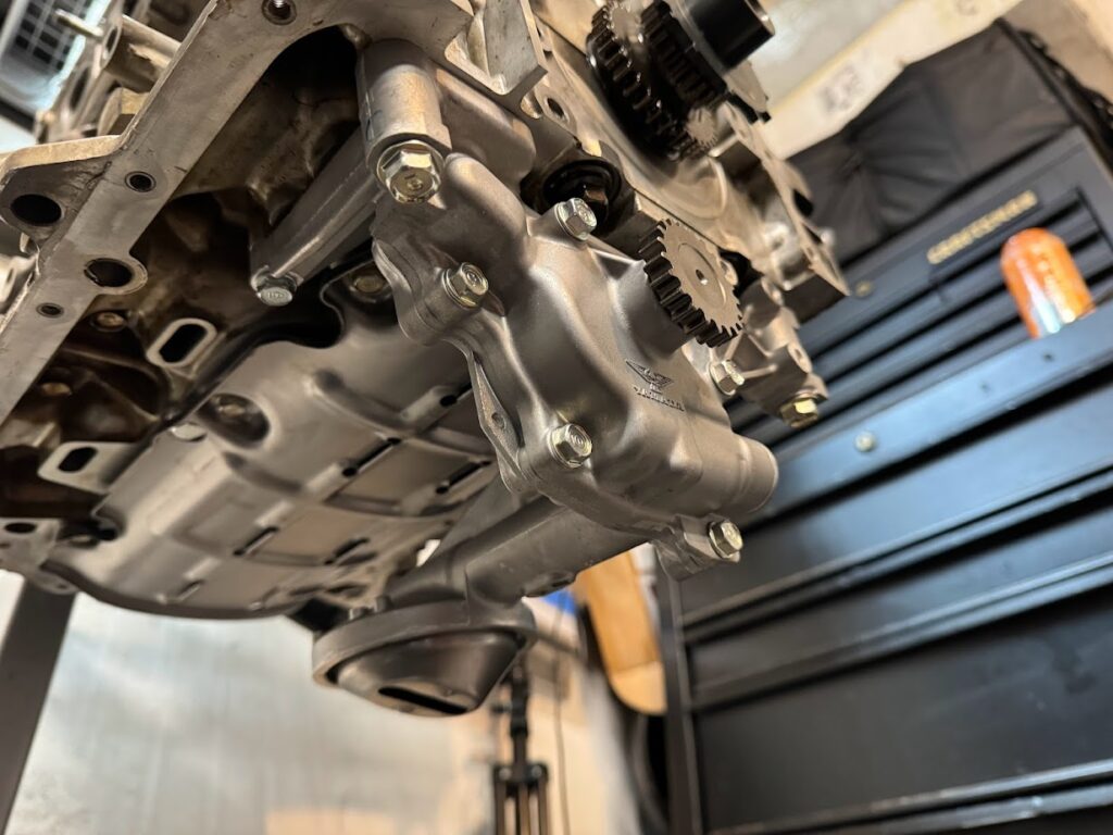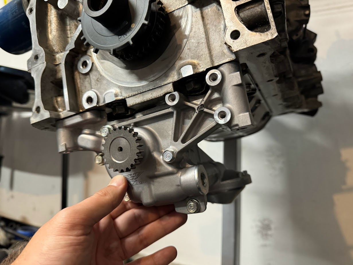 Being that I purchased a used 60k mile engine from Japan, it’s a no-brainer to do some required maintenance on it replacing the timing chain, all chain guides, chain tensioner, etc. This includes replacing the chonky RBC balance shafted oil pump with a K20A2 PRB oil pump. Although this PRB pump will give off more engine vibrations than the RBC pump the trade off is worth it. It’s more compact design, offers way less parasitic drag resulting in an approximate 5-7hp give-back, and cavitates oil later than sooner in the rpm range. Being the goto performance oriented oil pump this is, it’s usually a mandatory upgrade for K-series baffled pans offered on the market such as with the Unit2Fab baffled pan I have. This pump does need to be modified for certain K-series block fitment (such as mine) to fit around the girdle hump.